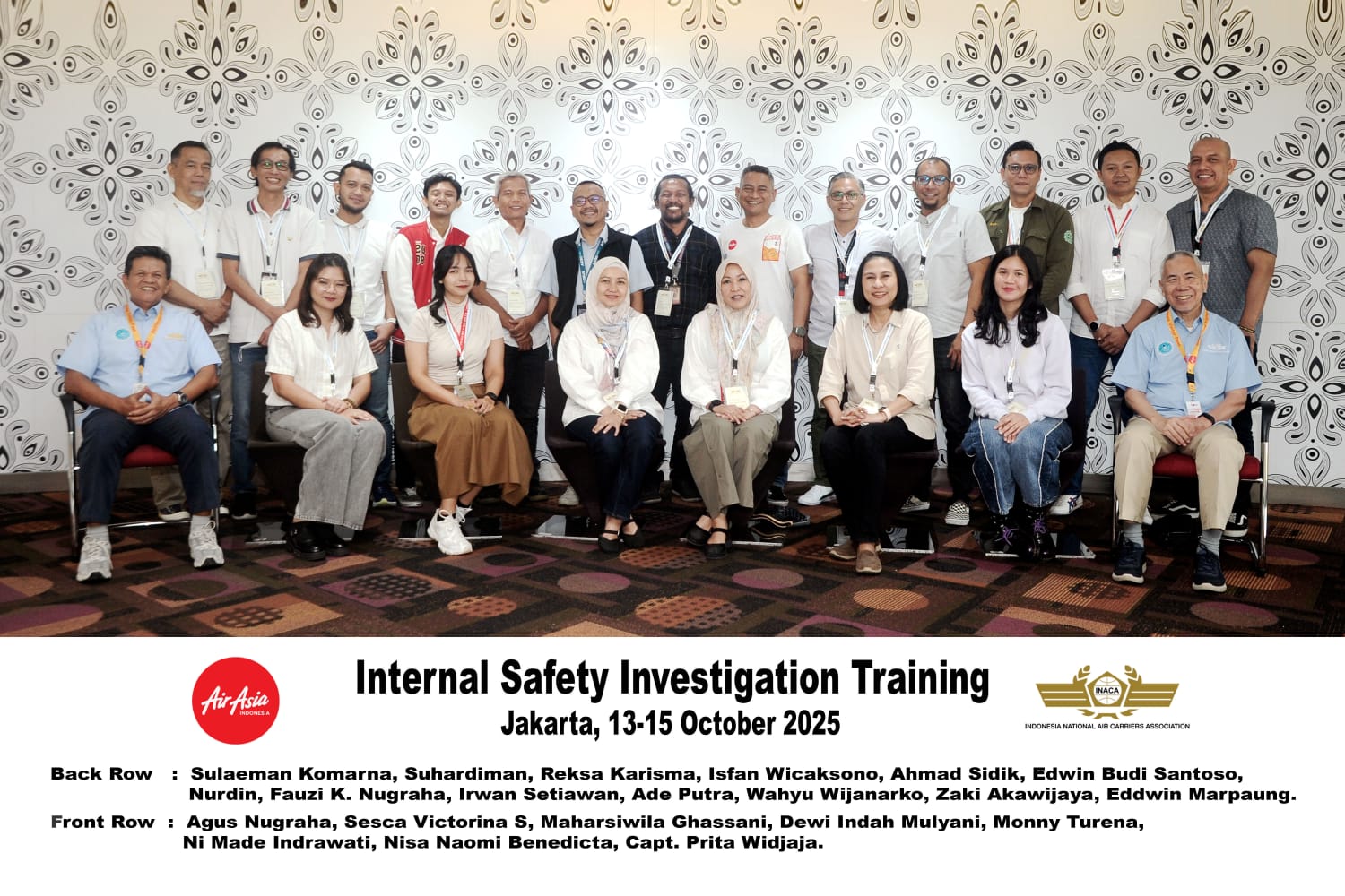 Kali ini yang dilaksanakan adalah Internal Safety Investigation Training (ISIT), course ke XI. Training diselenggarakan mulai hari Senin – Rabu, tanggal 13 sampai dengan 15 Oktober 2025 di Red House Indonesia AirAsia, Cengkareng.